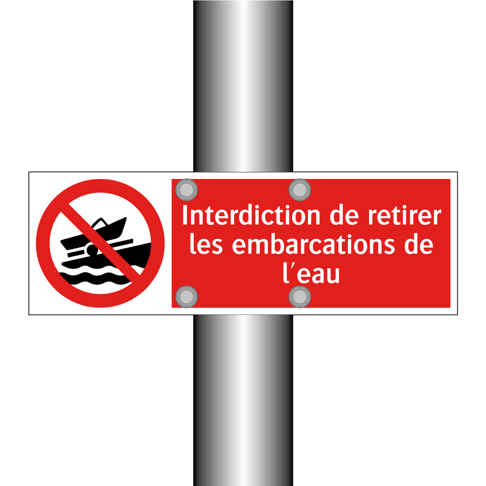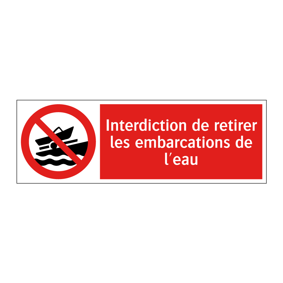 Panneau d'interdiction avec le texte : "Interdiction de retirer les embarcations de l'eau" et une symbolique claire.