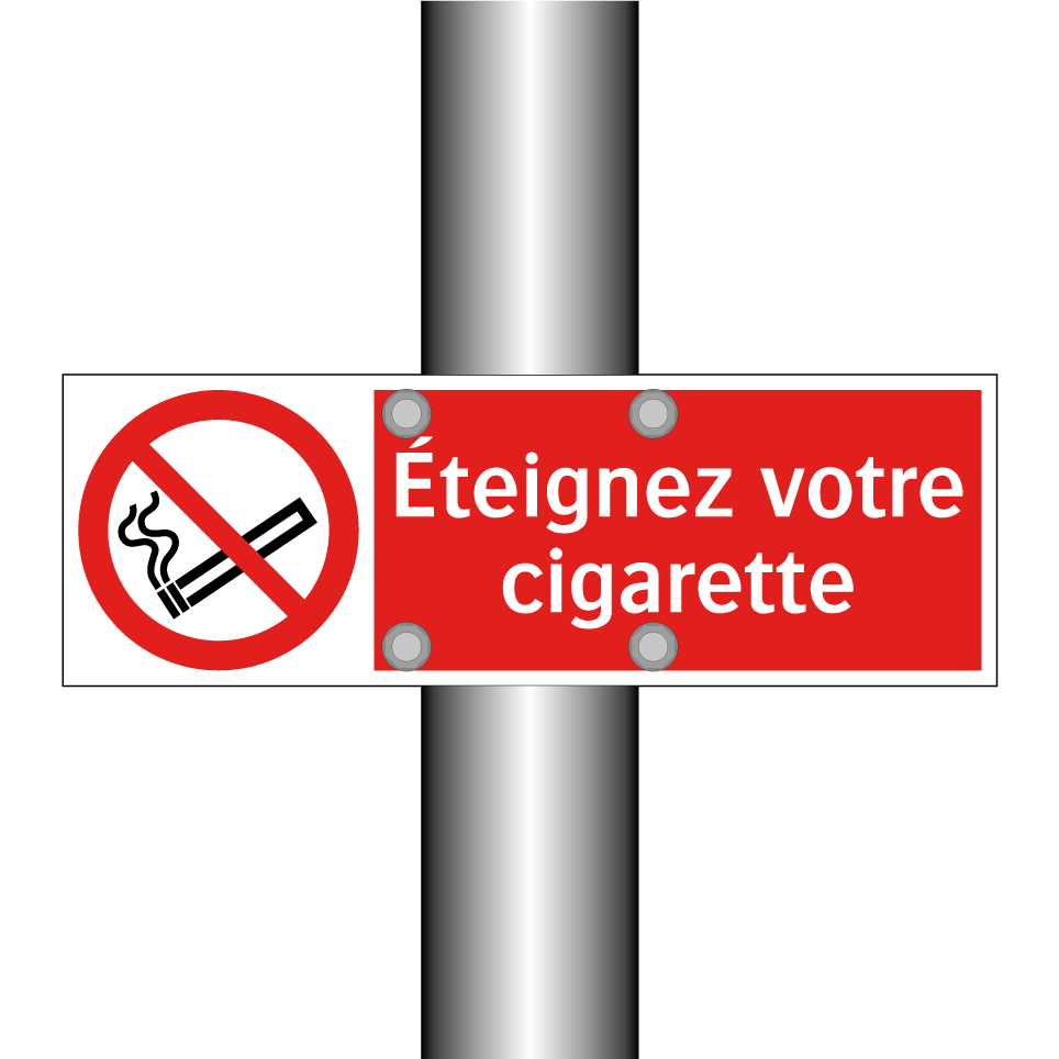 Panneau d'interdiction avec le texte : "Éteignez votre cigarette" et une symbolique claire.