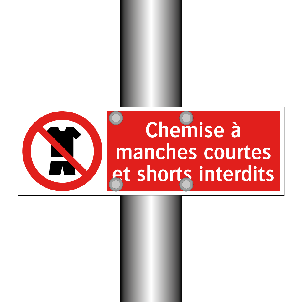 Panneau d'interdiction avec le texte : "Chemise à manches courtes et shorts interdits" et une symbolique claire.