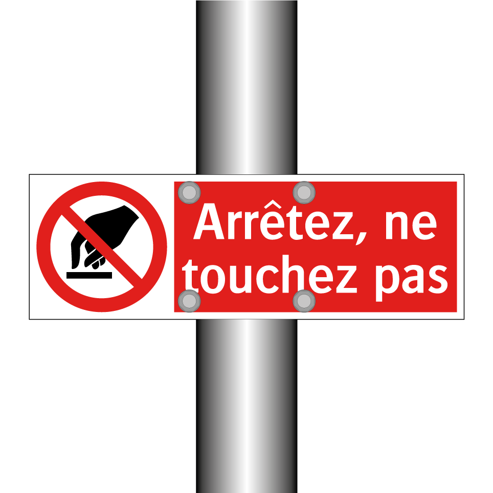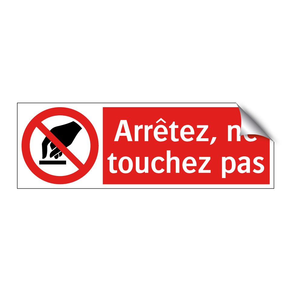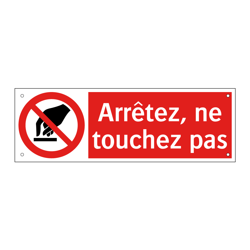 Panneau d'interdiction avec le texte : "Arrêtez, ne touchez pas" et une symbolique claire.