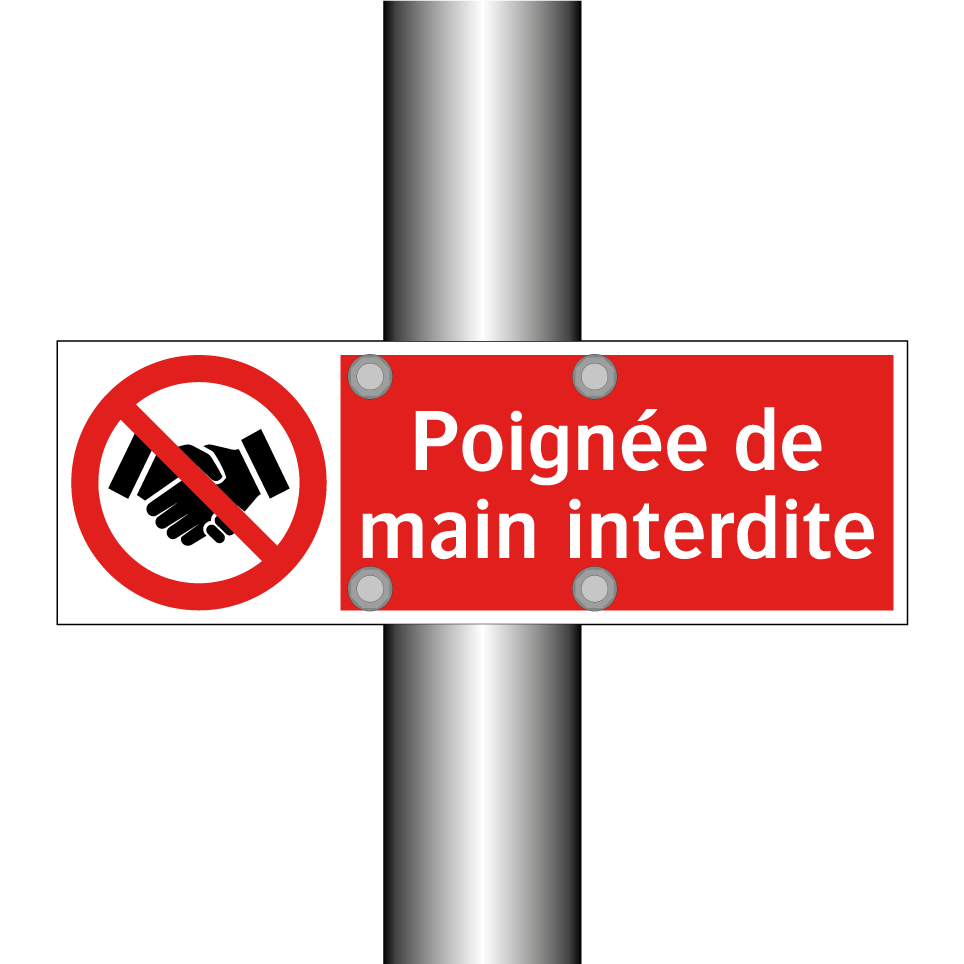 Panneau d'interdiction avec le texte : "Poignée de main interdite" et une symbolique claire.