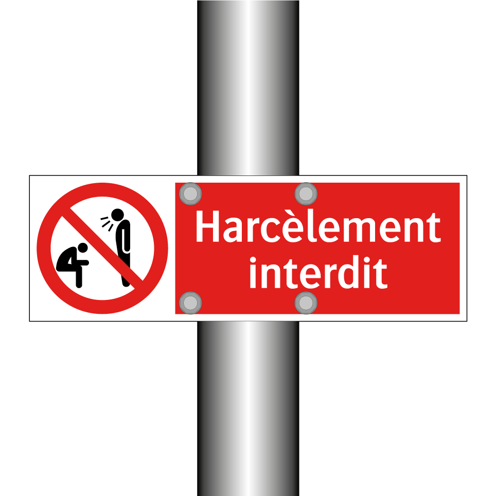 Panneau d'interdiction avec le texte : "Harcèlement interdit" et une symbolique claire.