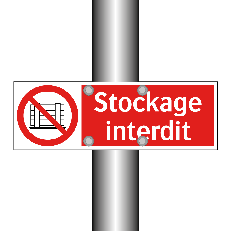 Panneau d'interdiction avec le texte : "Stockage interdit" et une symbolique claire.