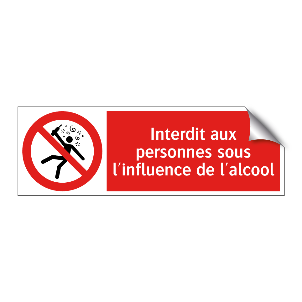 Panneau d'interdiction avec le texte : "Interdit aux personnes sous l'influence de l'alcool" et une symbolique claire.
