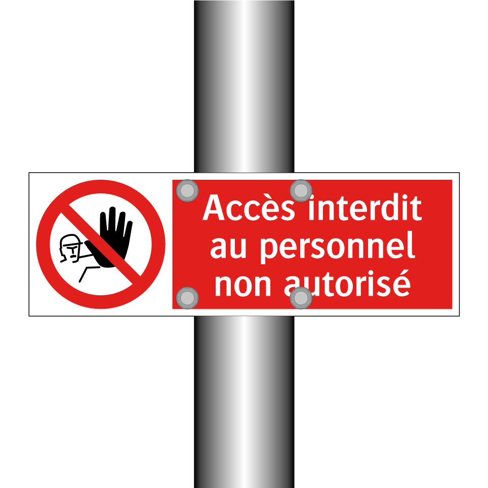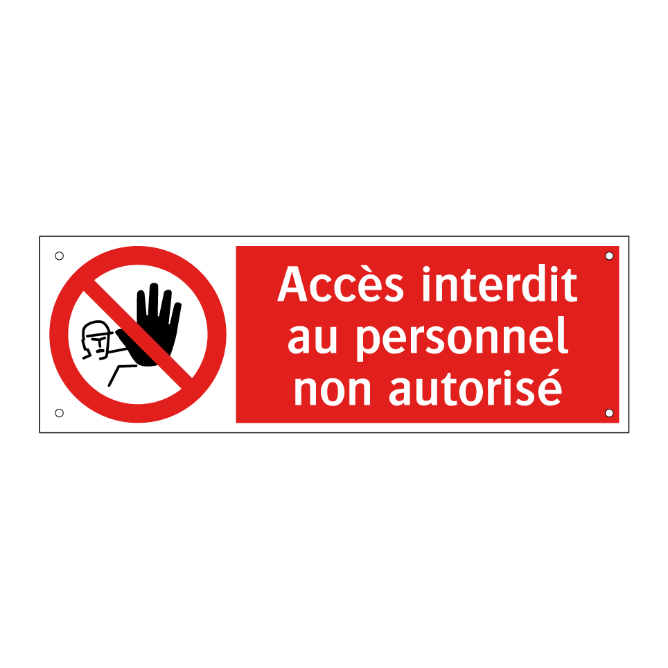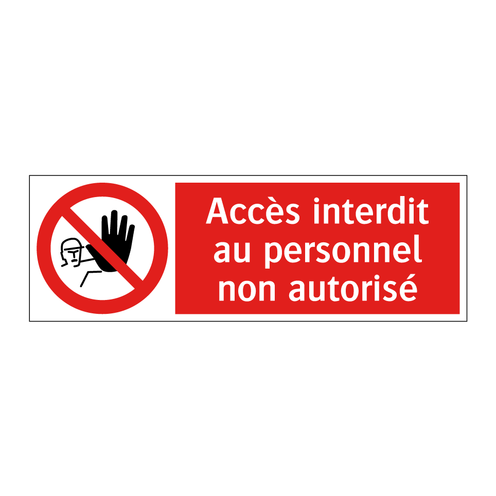 Panneau d'interdiction avec le texte : "Accès interdit au personnel non autorisé" et une symbolique claire.