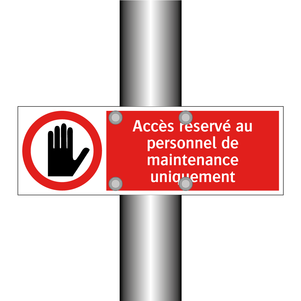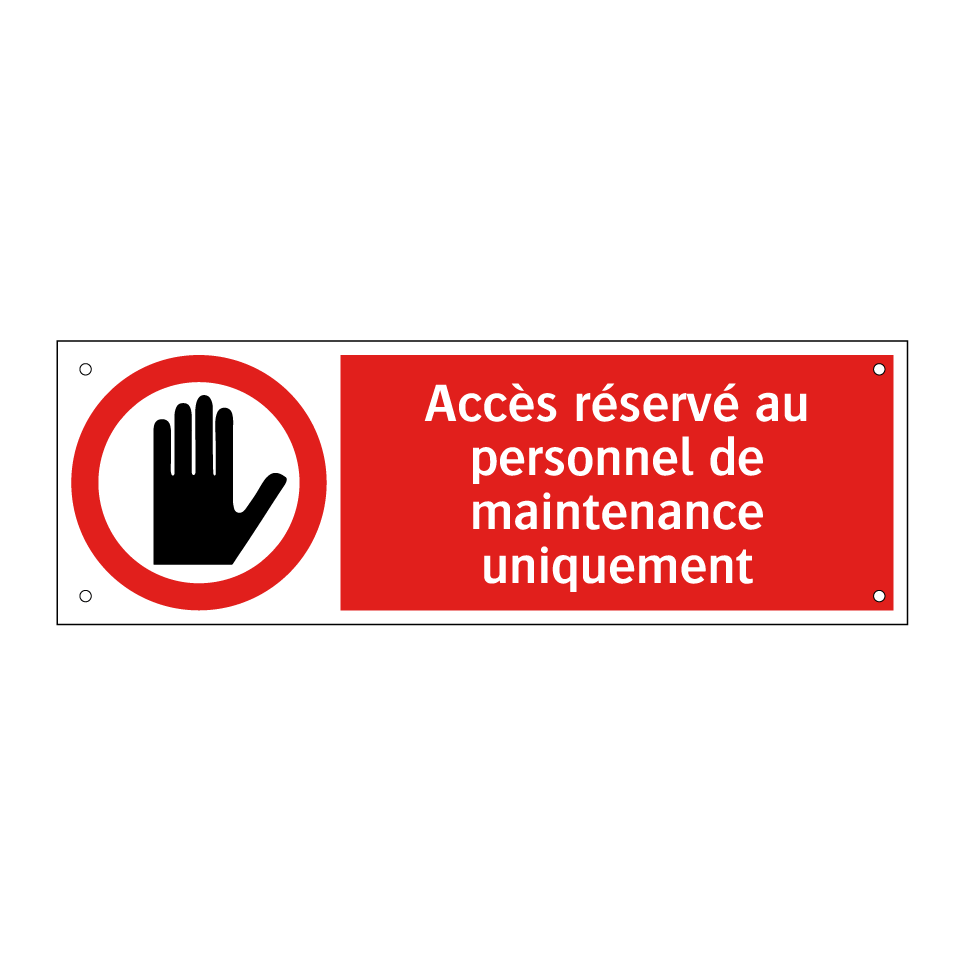 Panneau d'interdiction avec le texte : "Accès réservé au personnel de maintenance uniquement" et une symbolique claire.