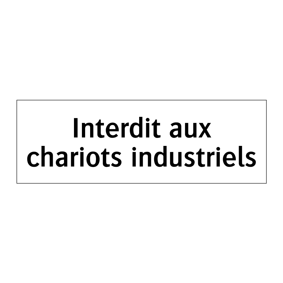 Panneau d'interdiction avec le texte : "Interdit aux chariots industriels"