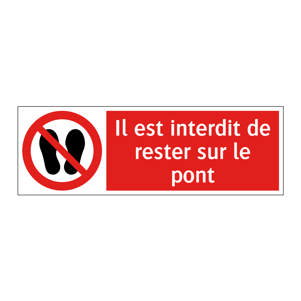 Panneau d'interdiction avec le texte : "Il est interdit de rester sur le pont" et une symbolique claire.