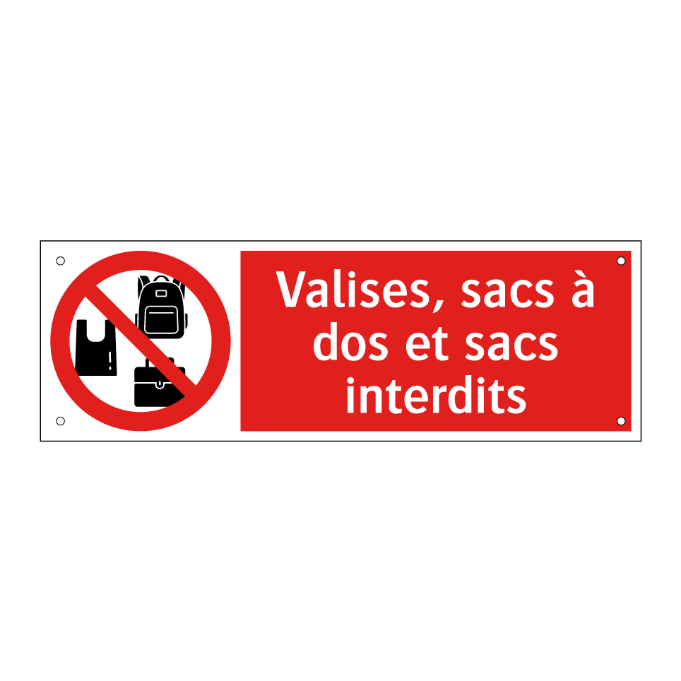 Panneau d'interdiction avec le texte : "Valises, sacs à dos et sacs interdits" et une symbolique claire.