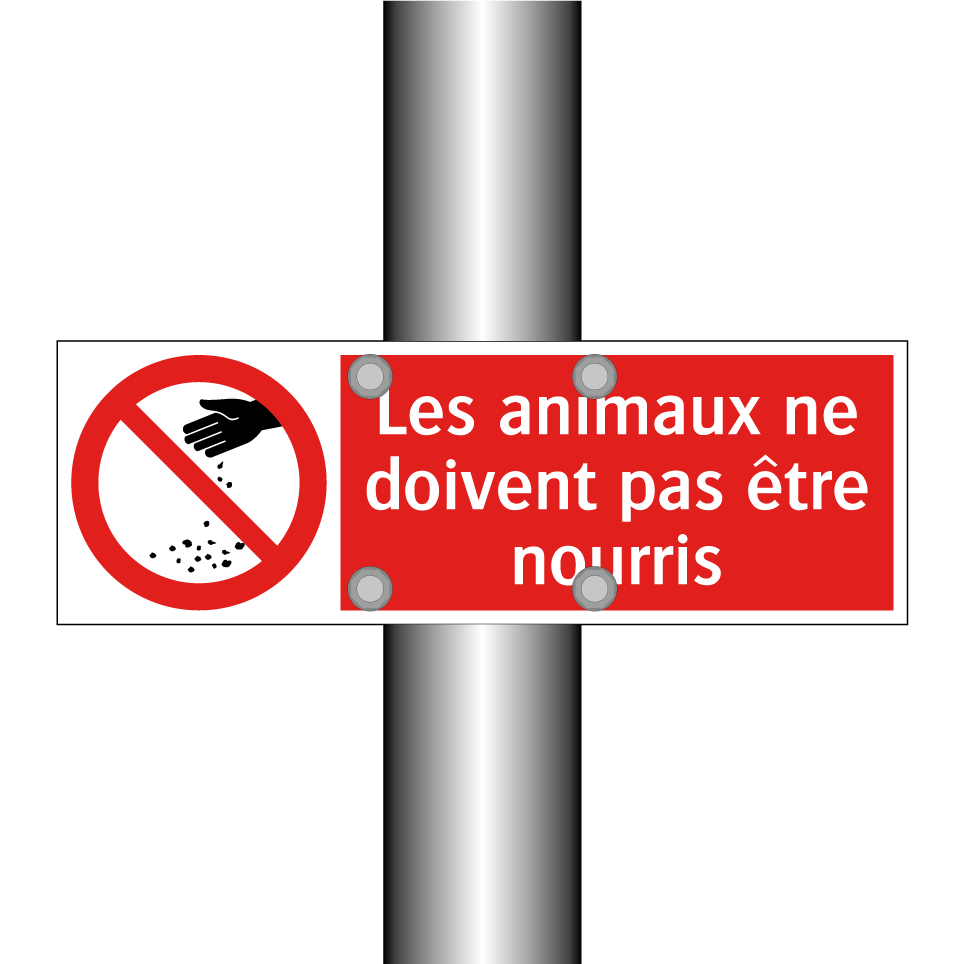 Panneau d'interdiction avec le texte : "Les animaux ne doivent pas être nourris" et une symbolique claire.