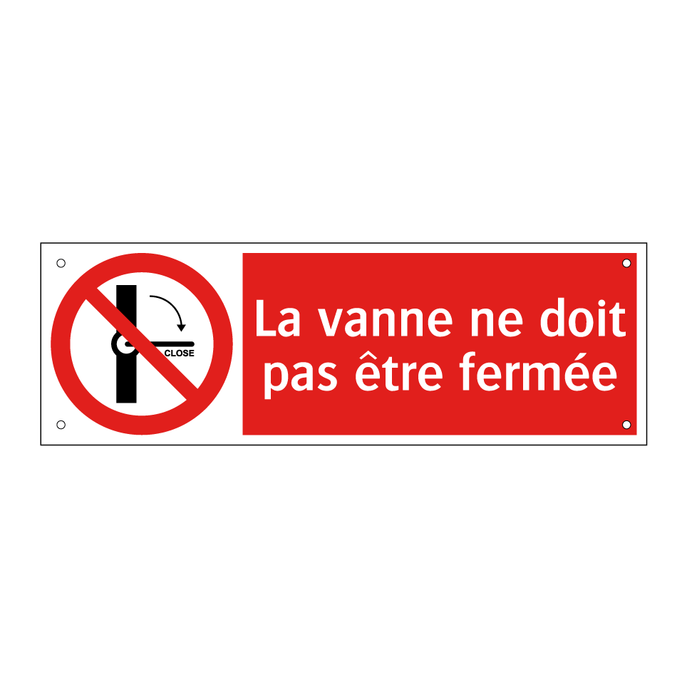 Panneau d'interdiction avec le texte : "La vanne ne doit pas être fermée" et une symbolique claire.