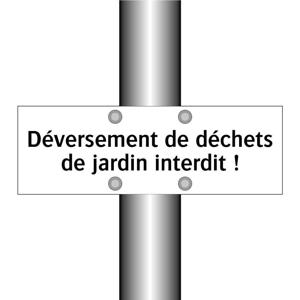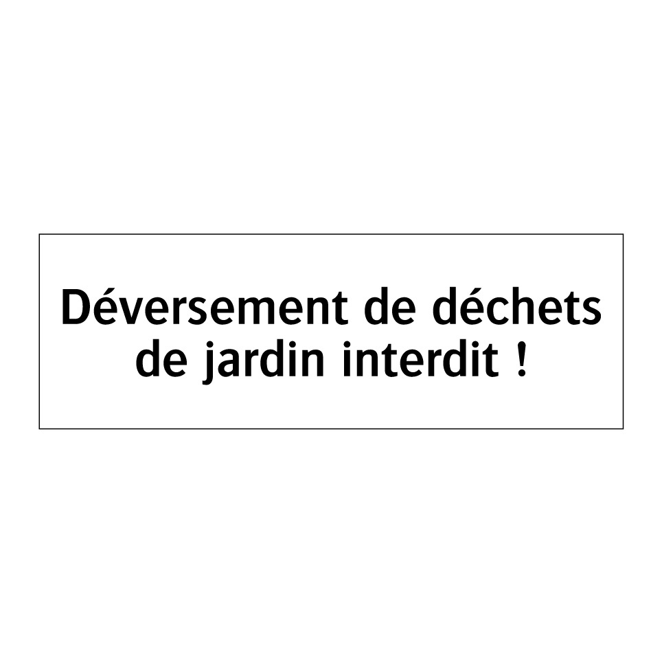 Panneau d'interdiction avec le texte : "Déversement de déchets de jardin interdit !"
