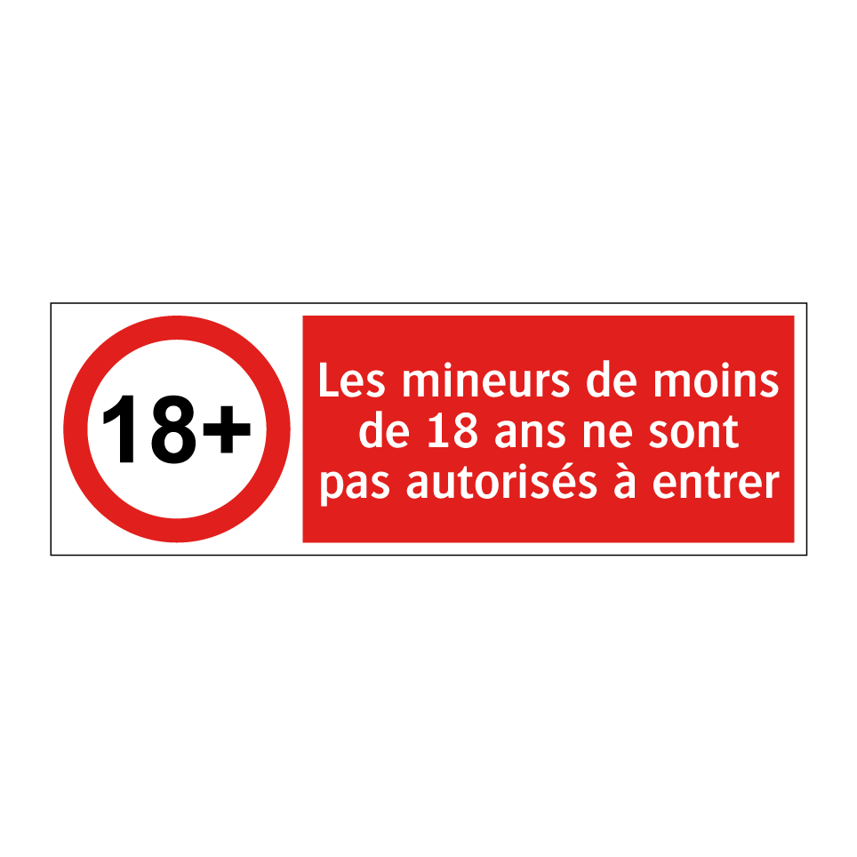 Panneau d'interdiction avec le texte : "Les mineurs de moins de 18 ans ne sont pas autorisés à entrer" et une symbolique claire.