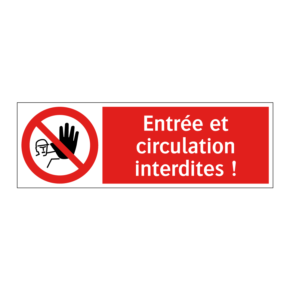 Panneau d'interdiction avec le texte : "Entrée et circulation interdites !" et une symbolique claire.