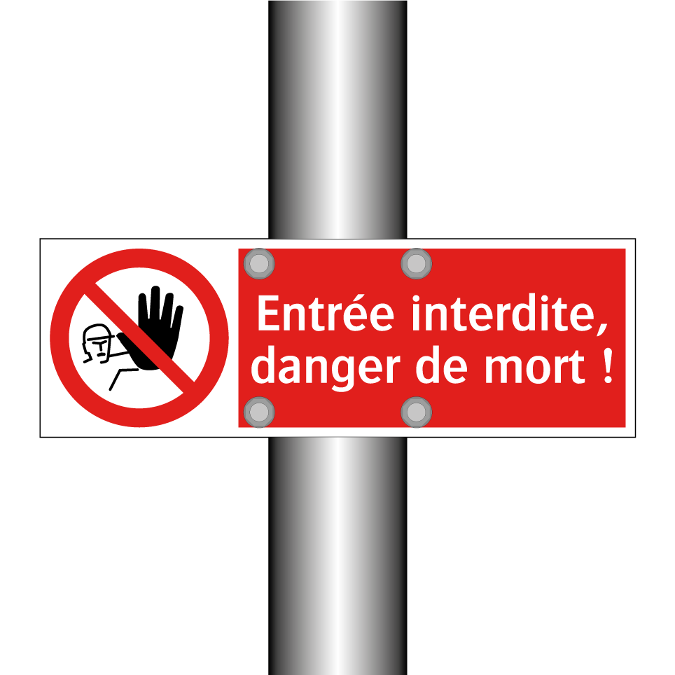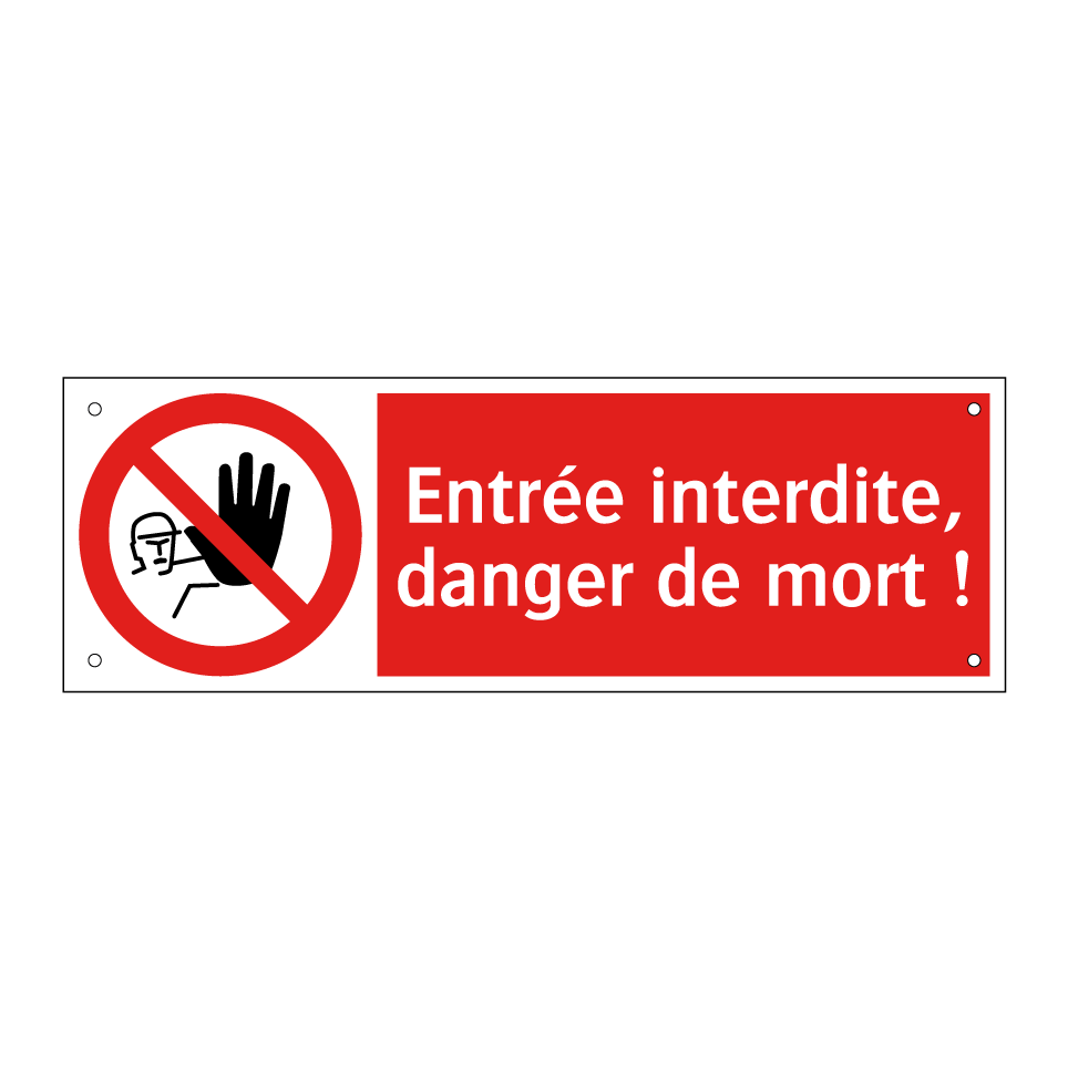 Panneau d'interdiction avec le texte : "Entrée interdite, danger de mort !" et une symbolique claire.