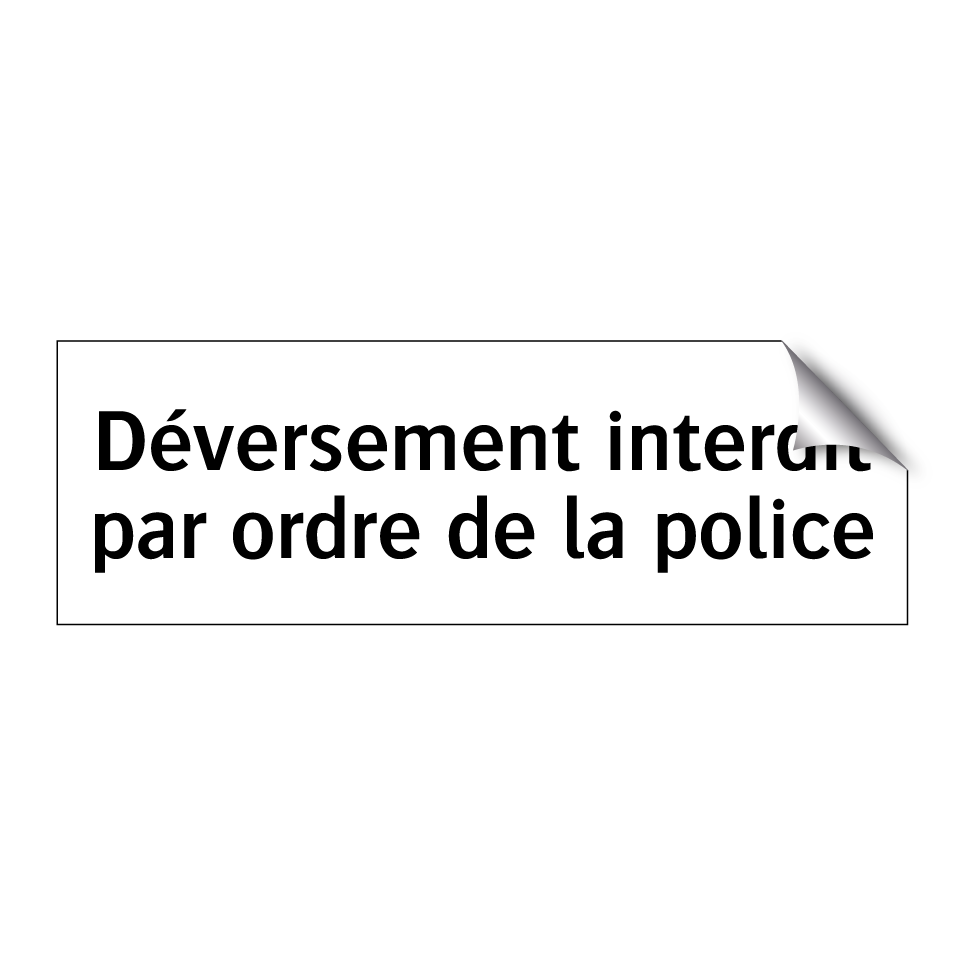 Panneau d'interdiction avec le texte : "Déversement interdit par ordre de la police"