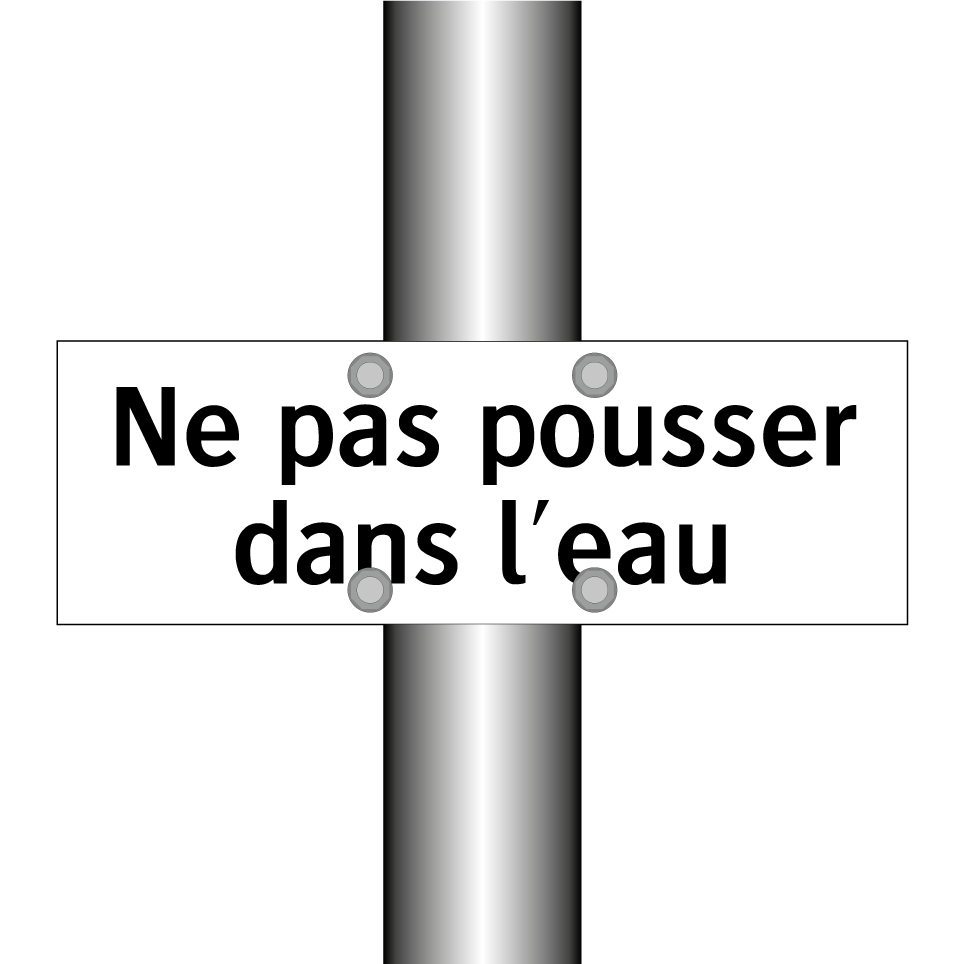 Panneau d'interdiction avec le texte : "Ne pas pousser dans l'eau"