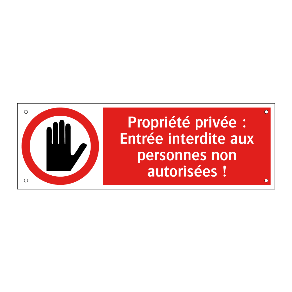 Panneau d'interdiction avec le texte : "Propriété privée : Entrée interdite aux personnes non autorisées !" et une symbolique claire.