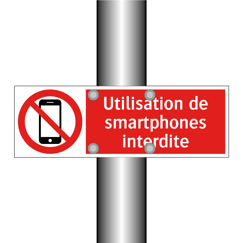 Panneau d'interdiction avec le texte : "Utilisation de smartphones interdite" et une symbolique claire.
