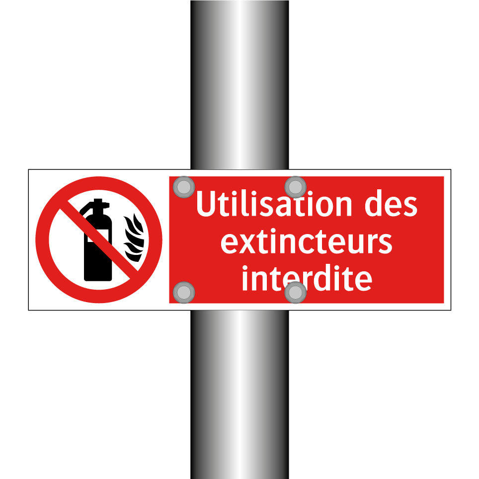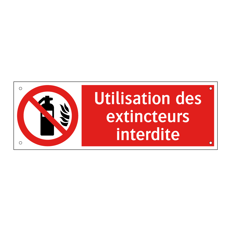Panneau d'interdiction avec le texte : "Utilisation des extincteurs interdite" et une symbolique claire.