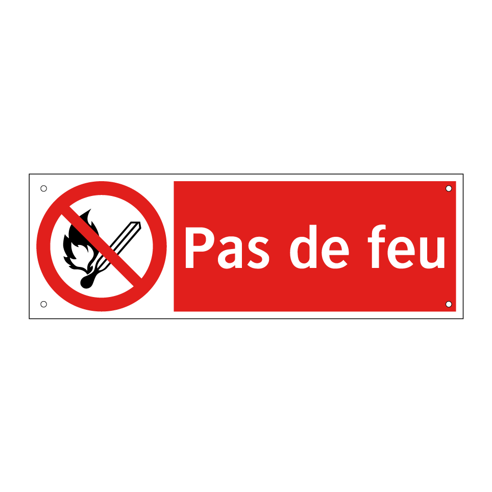 Panneau d'interdiction avec le texte : "Pas de feu" et une symbolique claire.
