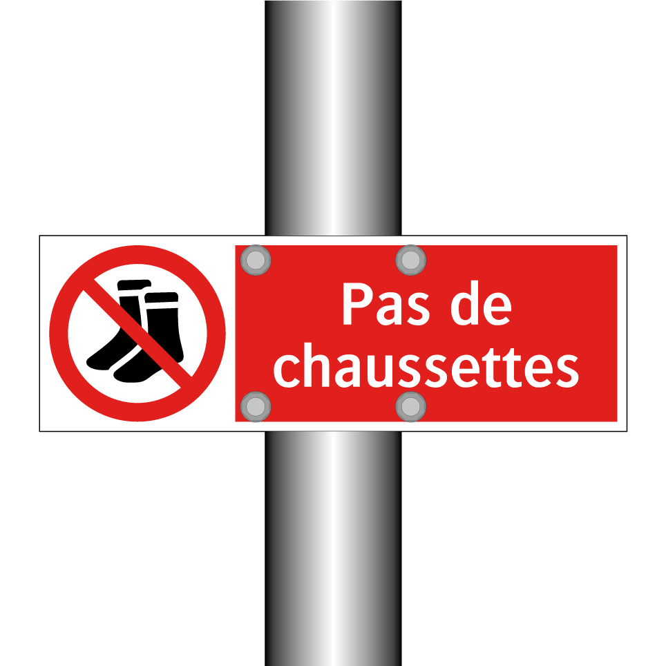 Panneau d'interdiction avec le texte : "Pas de chaussettes" et une symbolique claire.