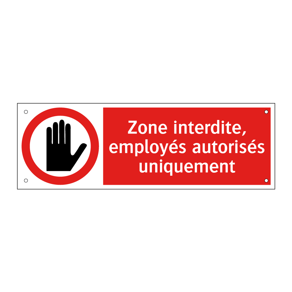 Panneau d'interdiction avec le texte : "Zone interdite, employés autorisés uniquement" et une symbolique claire.