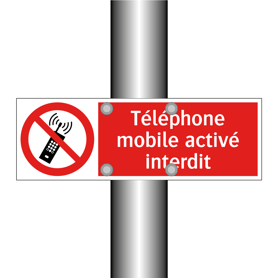 Panneau d'interdiction avec le texte : "Téléphone mobile activé interdit" et une symbolique claire.