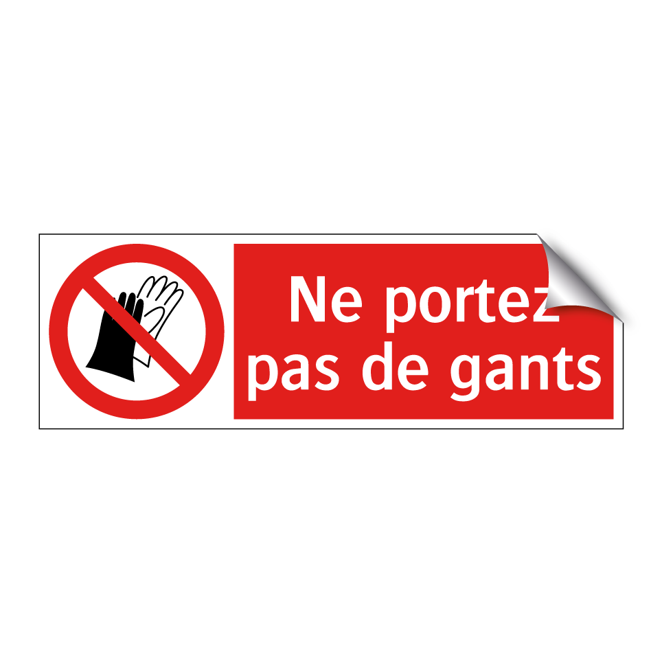 Panneau d'interdiction avec le texte : "Ne portez pas de gants" et une symbolique claire.