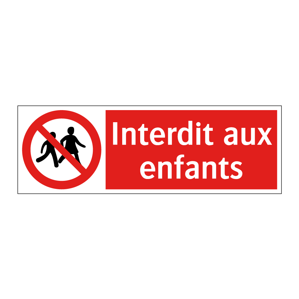Panneau d'interdiction avec le texte : "Interdit aux enfants" et une symbolique claire.