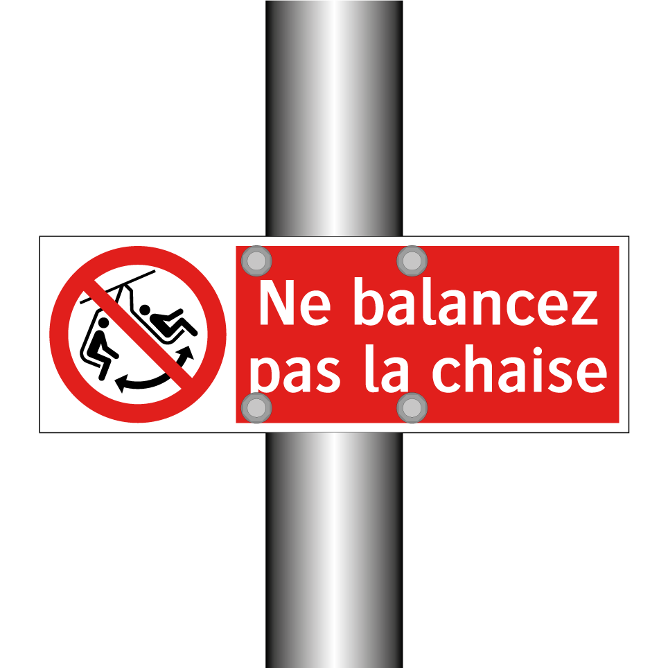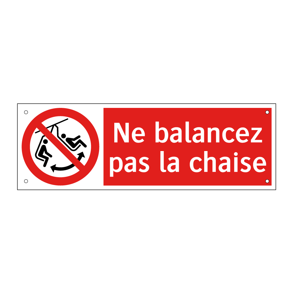 Panneau d'interdiction avec le texte : "Ne balancez pas la chaise" et une symbolique claire.