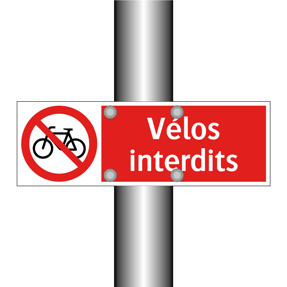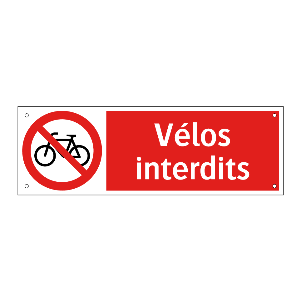 Panneau d'interdiction avec le texte : "Vélos interdits" et une symbolique claire.