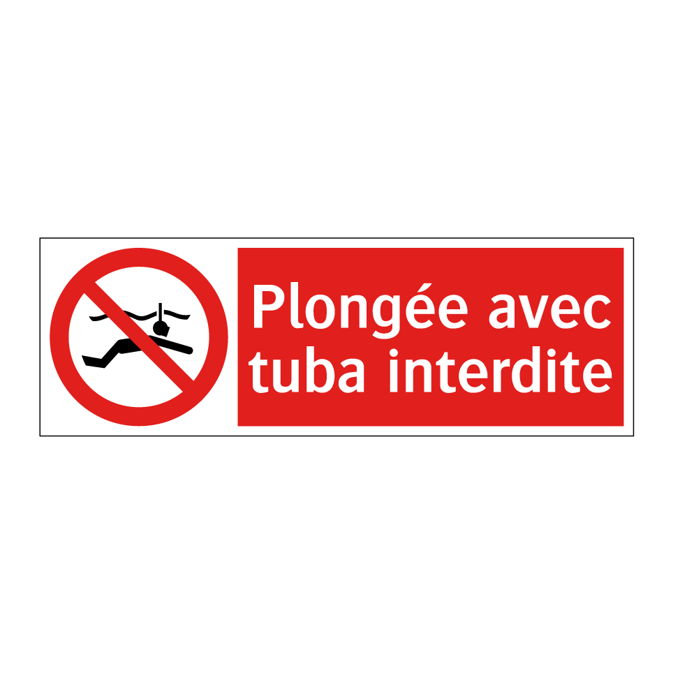 Panneau d'interdiction avec le texte : "Plongée avec tuba interdite" et une symbolique claire.