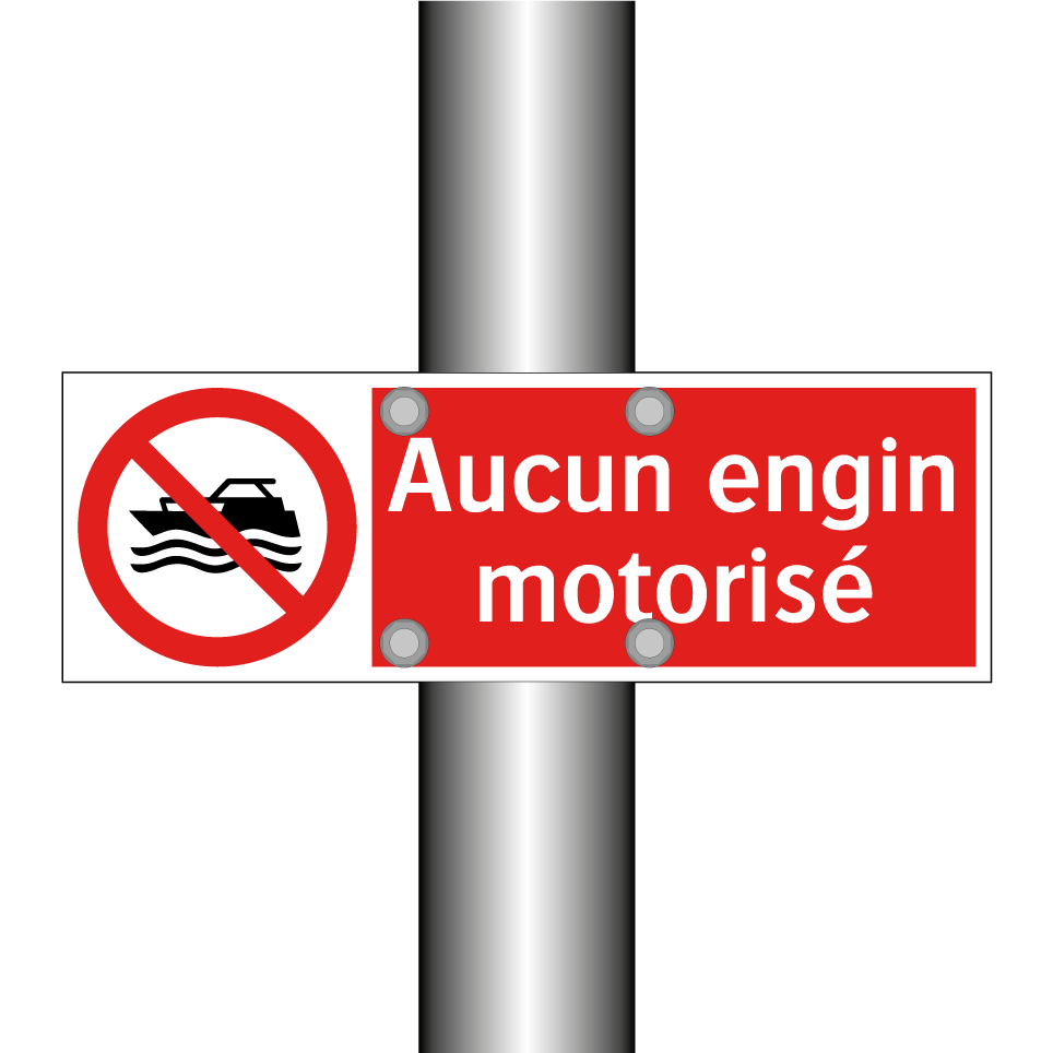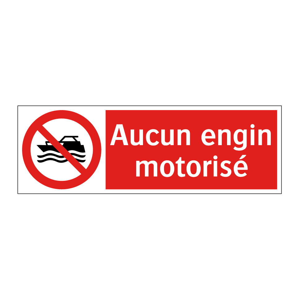 Panneau d'interdiction avec le texte : "Aucun engin motorisé" et une symbolique claire.