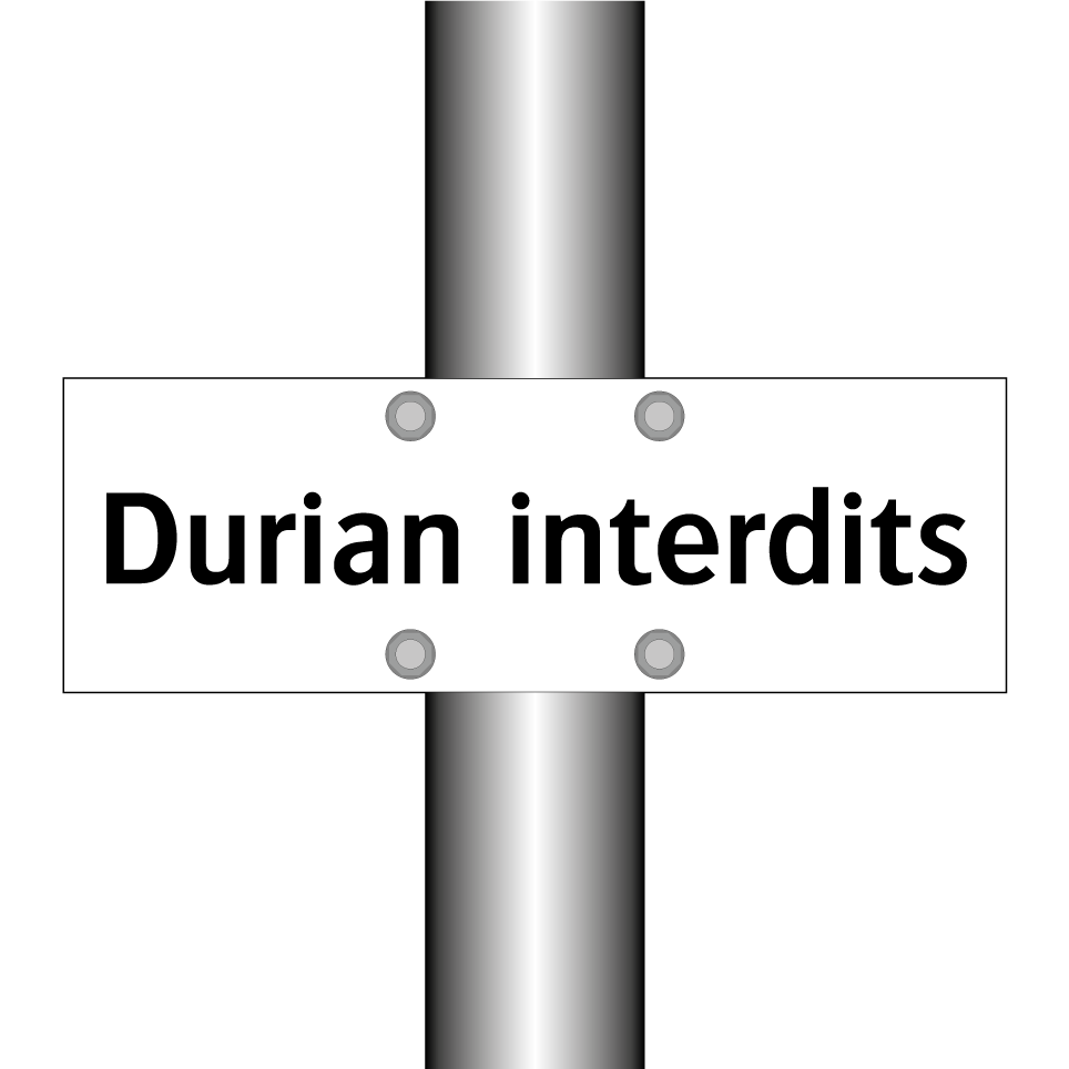 Panneau d'interdiction avec le texte : "Durian interdits"