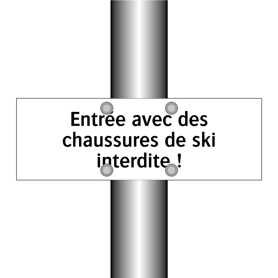 Panneau d'interdiction avec le texte : "Entrée avec des chaussures de ski interdite !"