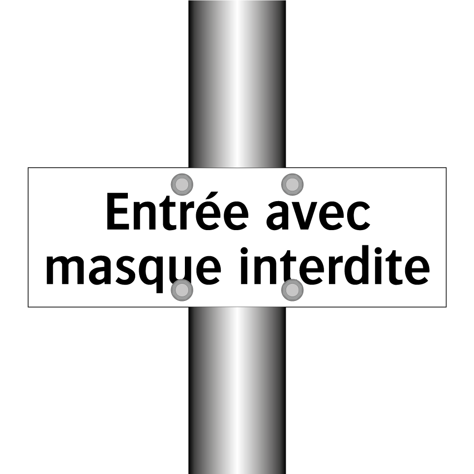 Panneau d'interdiction avec le texte : "Entrée avec masque interdite"