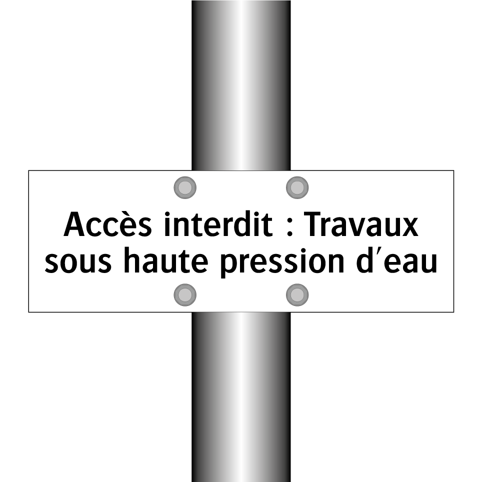Panneau d'interdiction avec le texte : "Accès interdit : Travaux sous haute pression d'eau"