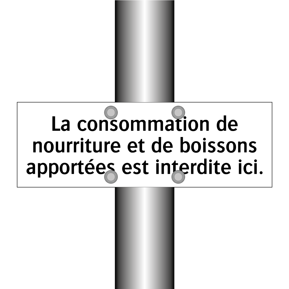Panneau d'interdiction avec le texte : "La consommation de nourriture et de boissons apportées est interdite ici."