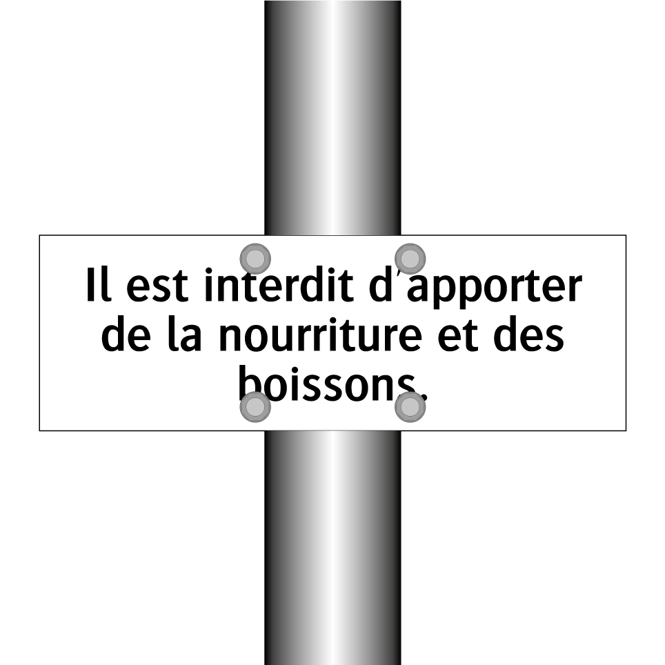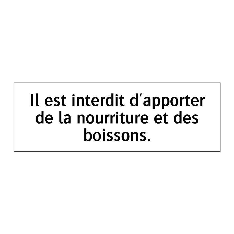 Panneau d'interdiction avec le texte : "Il est interdit d'apporter de la nourriture et des boissons."