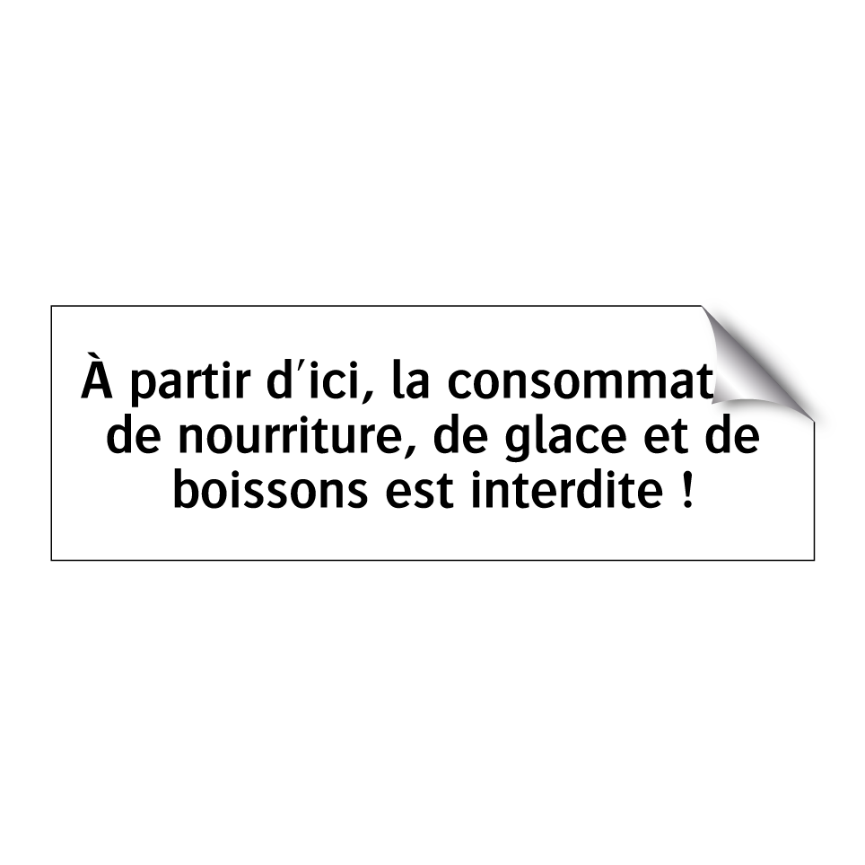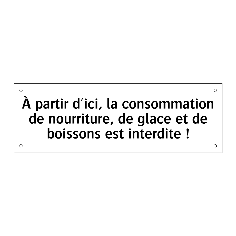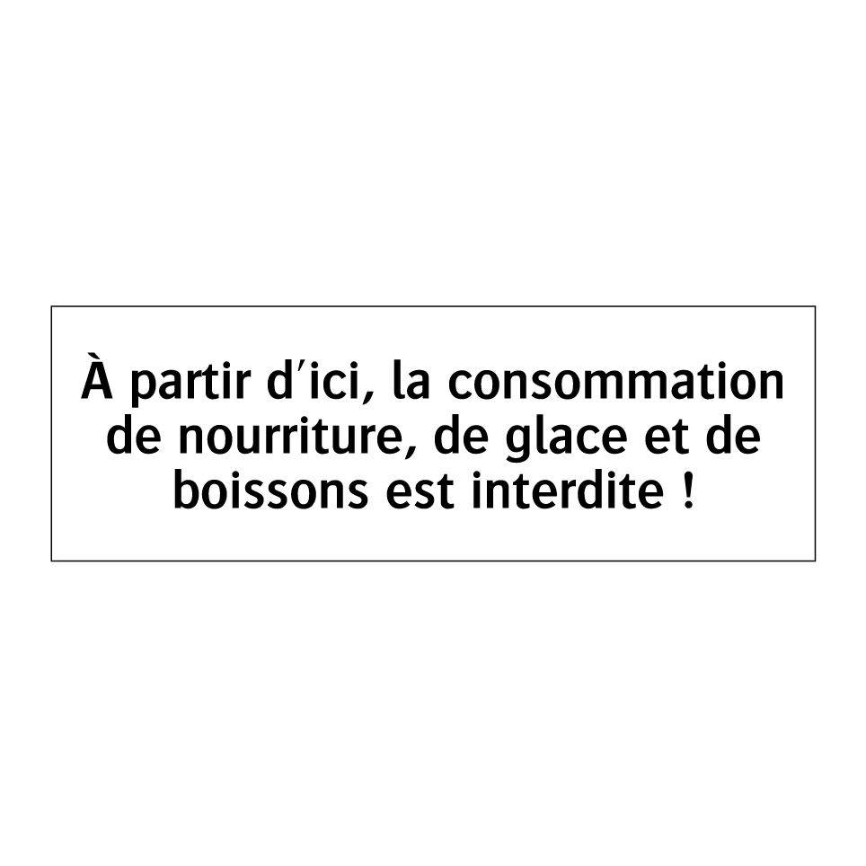 Panneau d'interdiction avec le texte : "À partir d'ici, la consommation de nourriture, de glace et de boissons est interdite !"
