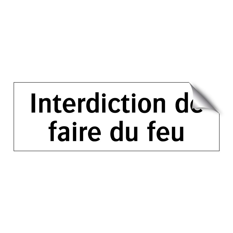 Panneau d'interdiction avec le texte : "Interdiction de faire du feu"