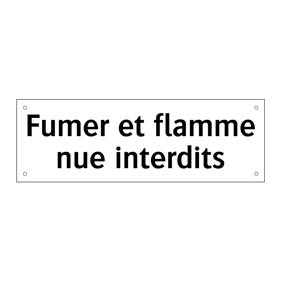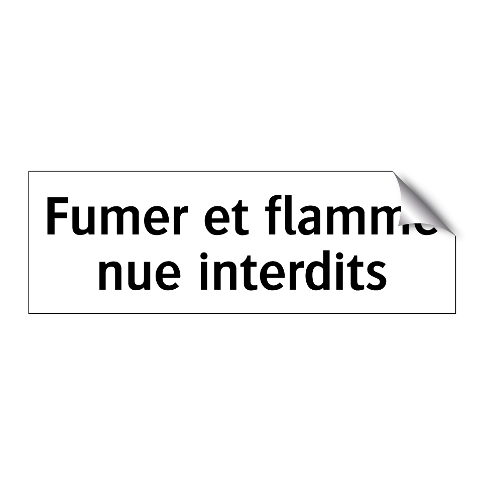 Panneau d'interdiction avec le texte : "Fumer et flamme nue interdits"