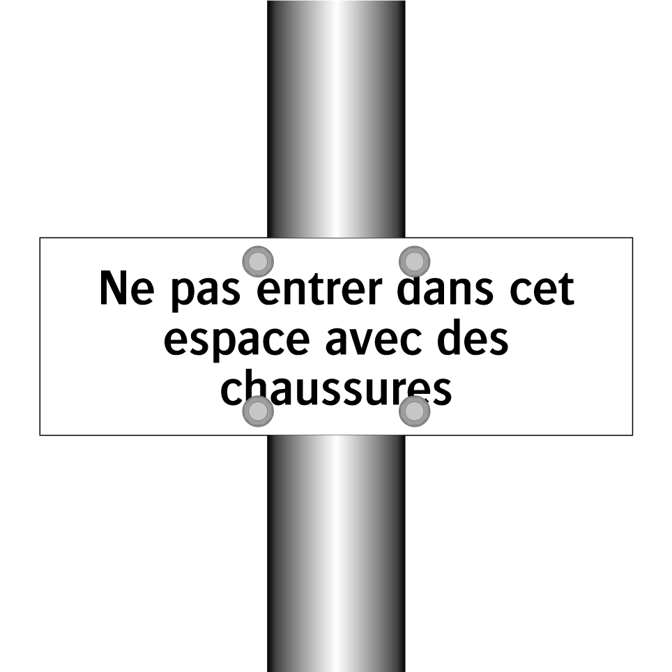 Panneau d'interdiction avec le texte : "Ne pas entrer dans cet espace avec des chaussures"