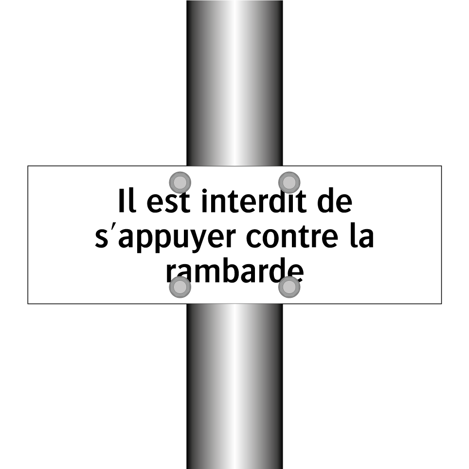 Panneau d'interdiction avec le texte : "Il est interdit de s'appuyer contre la rambarde"