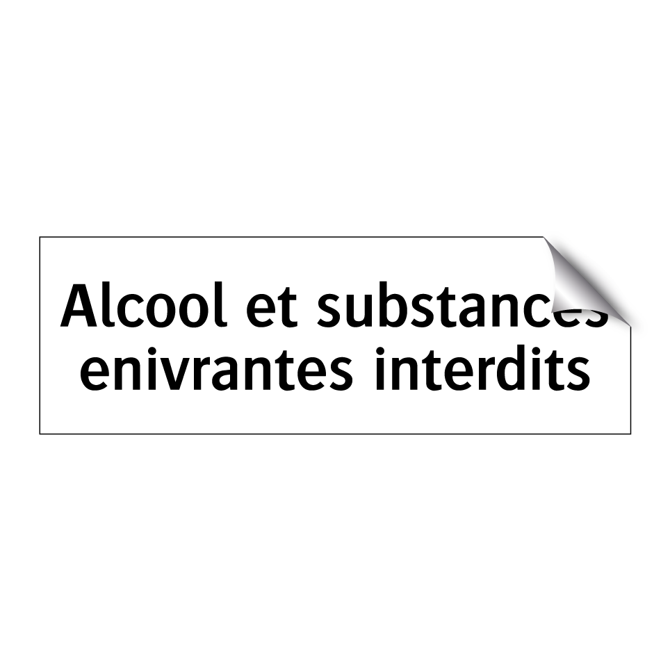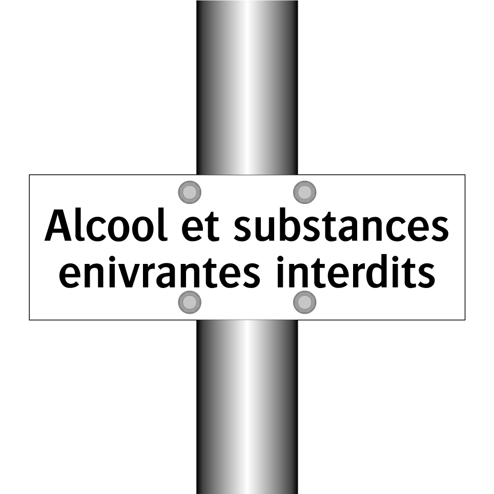 Panneau d'interdiction avec le texte : "Alcool et substances enivrantes interdits"