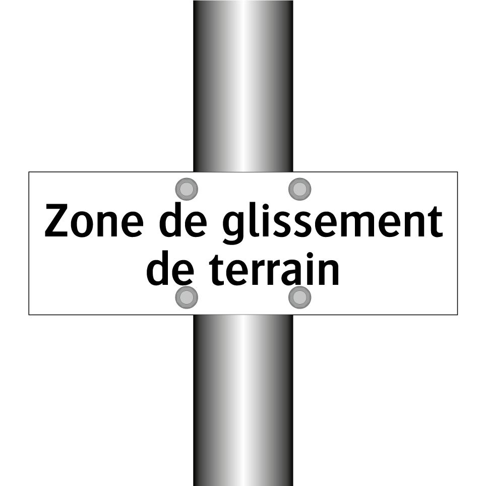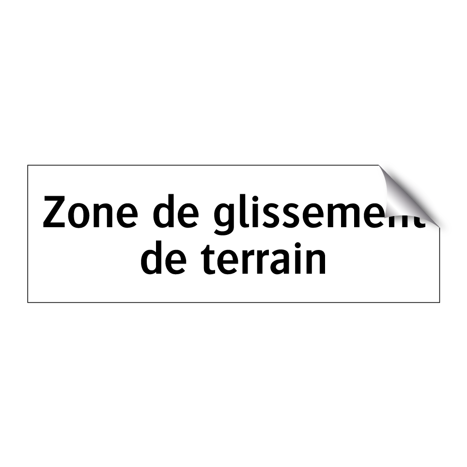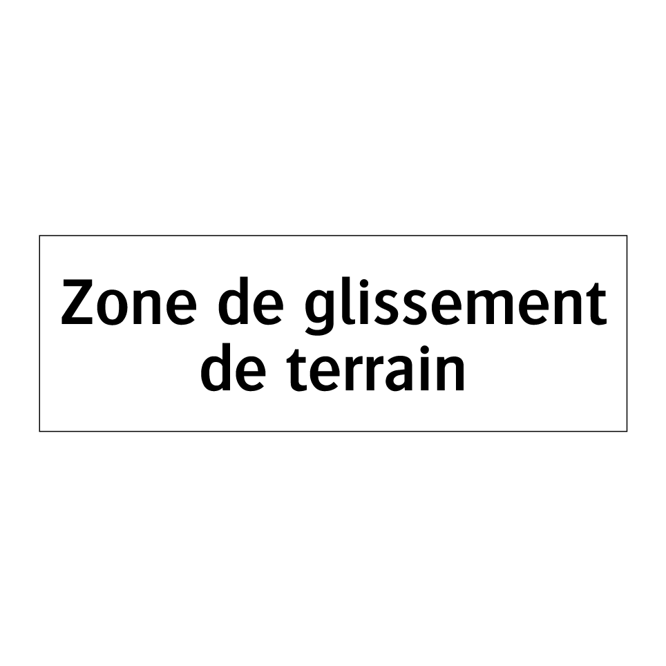 Panneau d'interdiction avec le texte : "Zone de glissement de terrain"