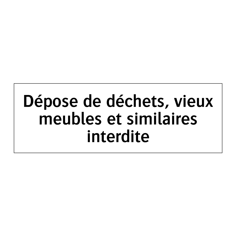 Panneau d'interdiction avec le texte : "Dépose de déchets, vieux meubles et similaires interdite"