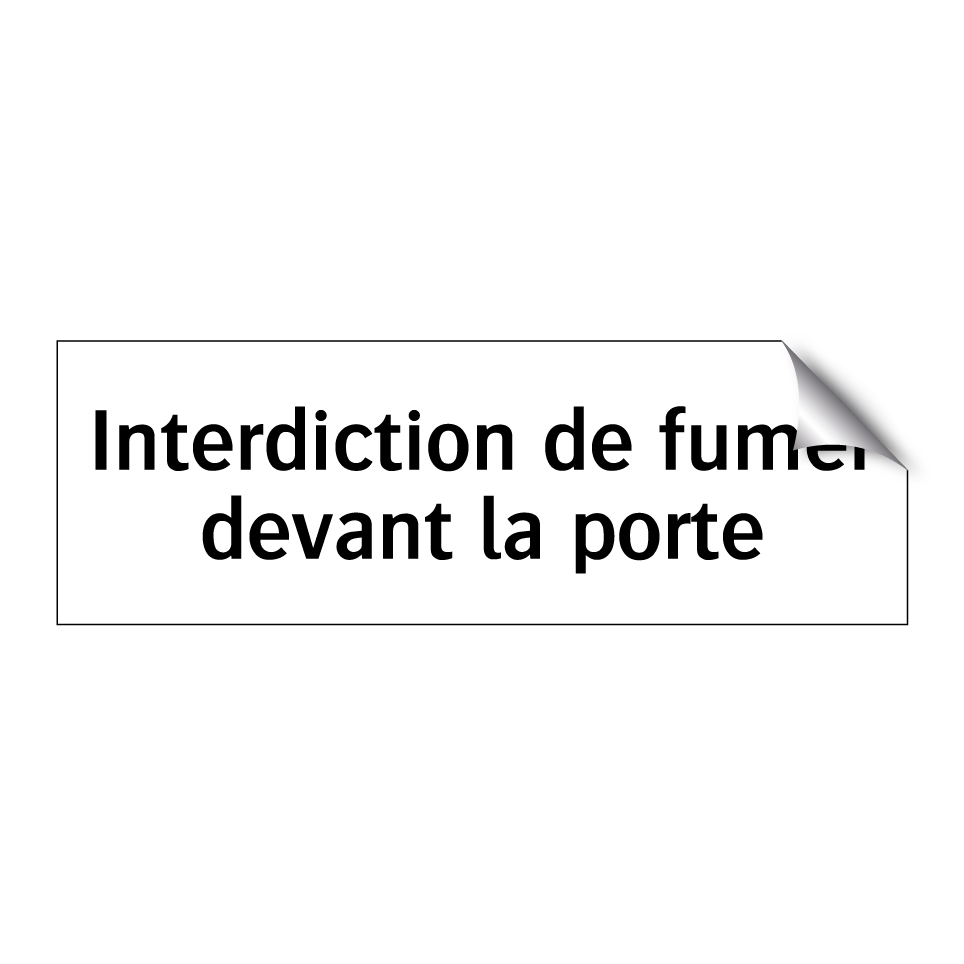 Panneau d'interdiction avec le texte : "Interdiction de fumer devant la porte"