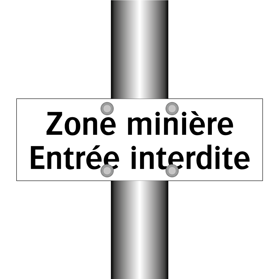 Panneau d'interdiction avec le texte : "Zone minière Entrée interdite"